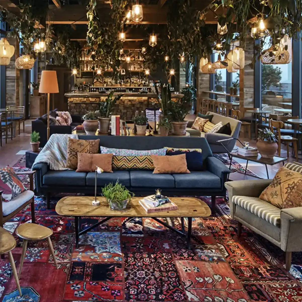 The Nest has perched atop Treehouse Hotel since its launch in November 2019, bringing a bright, eco-minded energy to Marylebone. Visitors ride the lift to a rooftop oasis where reclaimed timber, hanging plants and wrap-around glass frame 360-degree views of London stretching from Canary Wharf to Regent’s Park. Resident DJs spin relaxed sets from a wooden fort while bartenders mix seasonal, low-waste cocktails and serve small plates that champion British growers. Signature “forest-to-glass” pours use herbs grown on the terrace, aligning taste with the bar’s green ethos. Weekdays invite laptop-friendly lunches beside picture windows; weekends promise sunset selfies, “Drinks on the Woof” with canine companions and late-night dancing under lantern-lit trees. Open every day until 1 am, the terrace lets guests stargaze high above Oxford Circus long after the pavements quieten.